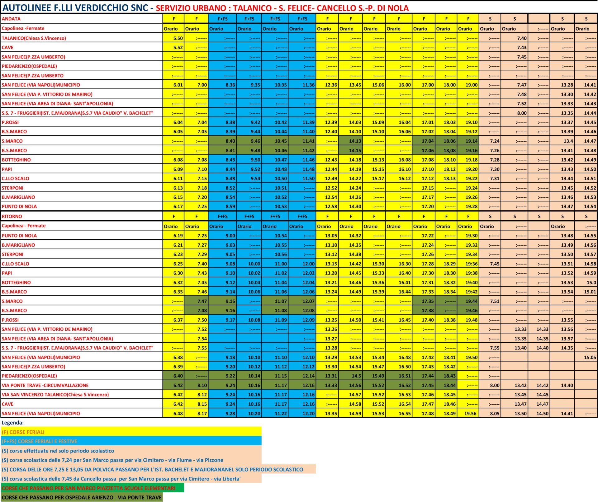 La Autolinee F.lli Verdicchio è una società sita a San Felice A Cancello che ogni giorno propone un efficiente servizio di trasporto urbano, contraddistinto dalla massima puntualità. I mezzi utilizzati per il trasporto sono degli autobus moderni, comodi e spaziosi, che permettono un viaggio rapido e tranquillo.